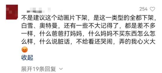 该宝妈的发声在网络上获得大量家长认同,家长们纷纷表示“这个动画真的有问题!”有网友称自己孩子也受到影响,时常大哭大闹。一些好奇的网友看了动画片段后,也直呼“毁三观”,并表态“这回我站家长”……