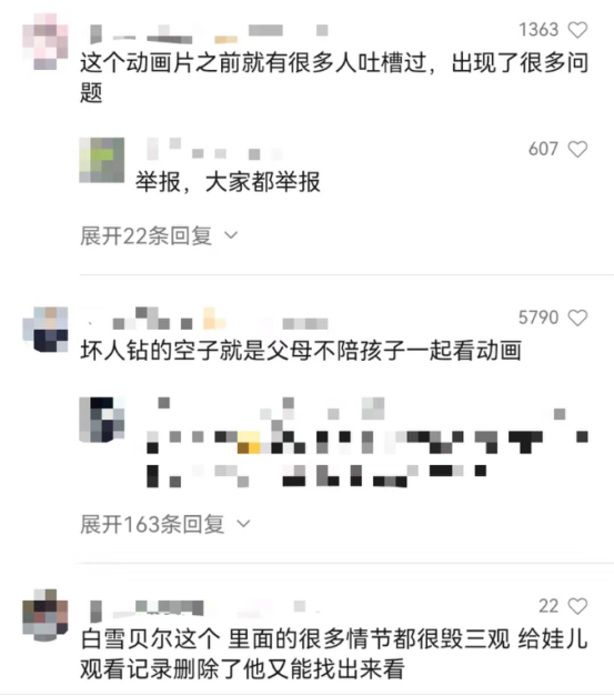 “因为孩子年龄小,我会挑选一些益智类的动画片让孩子看,这个动画小视频不知道怎么就被孩子看到并且喜欢上了。”王女士查看了视频软件的播放记录并询问孩子后才判断出,孩子应该是在看完正常的动画片后,无意间刷到了‘白雪贝儿’这个动画,之后就经常在播放记录里点开继续看。后悔不已的王女士感叹“真的防不胜防!”