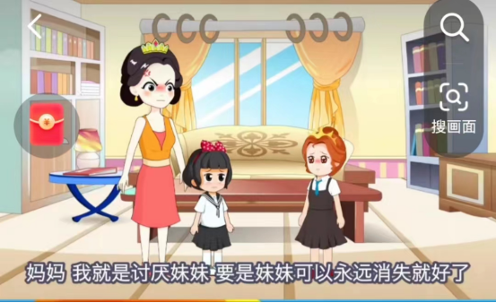直到有一天,小女儿用平板电脑看动画时,正在一旁收拾家务的王女士猛然间听到动画里传来尖锐的叫喊声——“妈妈你偏心!”震惊的王女士这才意识到女儿的变化很可能是由于受了动画的影响。