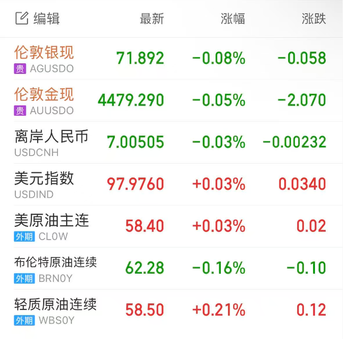 现货黄金在亚盘将历史新高刷新至4520美元上方,随后持续回落,盘中一度大跌超70美元,但美盘收复部分失地,伦敦金最终收跌0.05%,报4479.29美元/盎司;现货白银将历史新高刷新至72美元上方,随后有所回落,伦敦银最终收跌0.08%,报71.89美元/盎司。