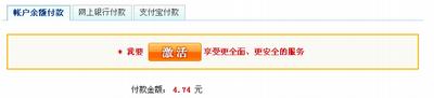 如果您是第一次使用【账户余额付款】,页面会提示您激活账号,点击【激活】,按照页面提示填写相关信息即可,如下图所示: