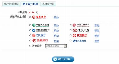 第二步:选择支付方式。提交购卡信息后,您将跳转到网易宝支付平台进行下一步的支付。如果您的网易宝账户有余额,可以直接选择【账户余额付款】,如果没有余额,您可以选择【网上银行付款】,如果您支付宝账户有余额也可以使用【支付宝付款】。如下图所示: