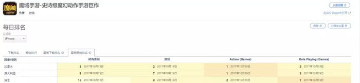 没有得到App Store的推荐,免费榜上的排名也没有,能够拿到这个成绩确实让人意外。但是从IP的角度来看,美国市场作为《魔域》IP的起源地,玩家基础方面还是有的。而早在2017年,游戏在瑞士,澳大利亚,加拿大等西方市场也都取得过成功。