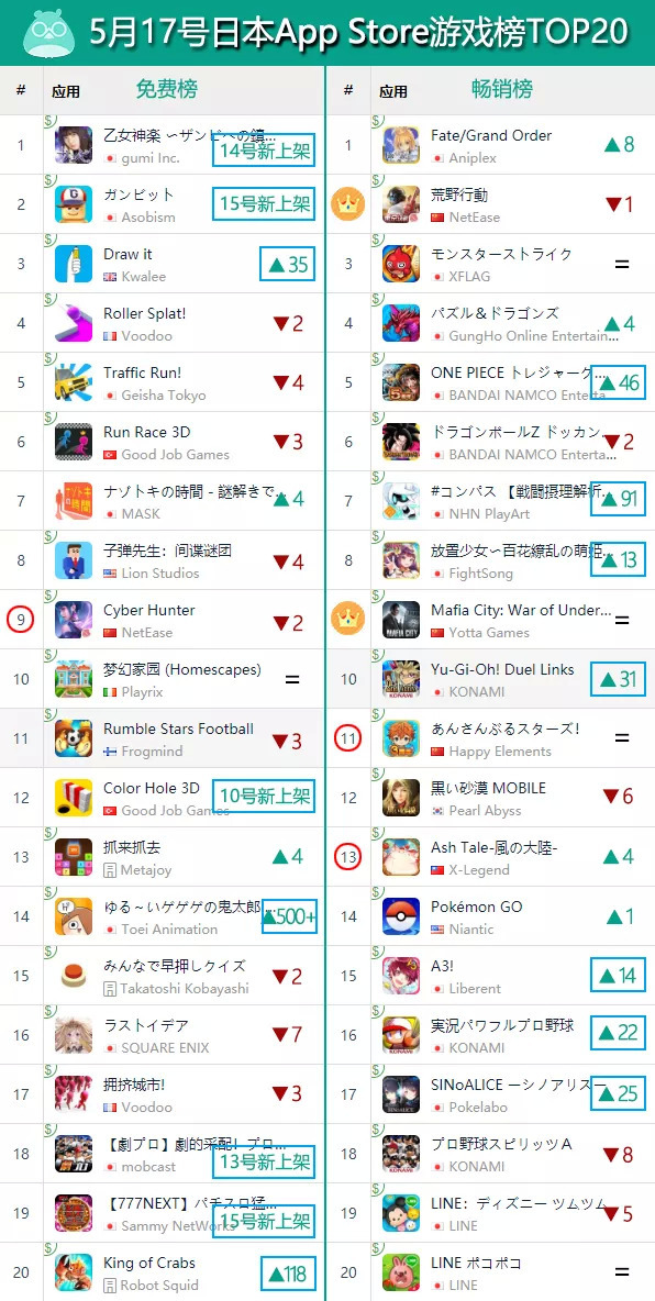 两款游戏都已经多次当选我们栏目的出海之星,而且在日本市场的表现也一向非常稳定,本期我们就不再展开了。