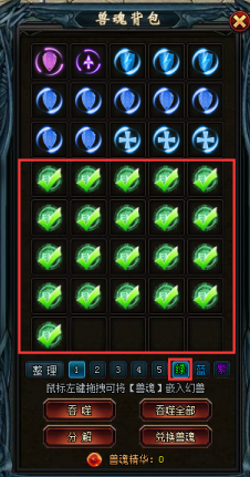兽魂拥有类型,每个类型只能装备一个;兽魂的装备不限格子,即格子无类型要求