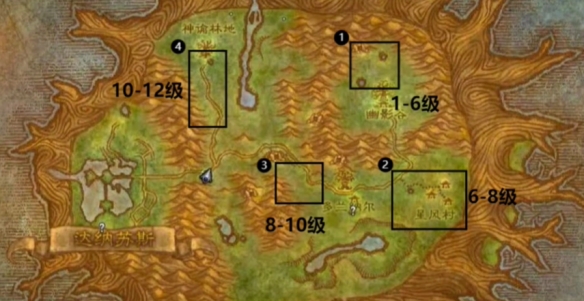 我们来到费伍德森林,根据等级从下到上刷到55级,55级之后前往冬泉谷完成任务刷怪即可升到60级。